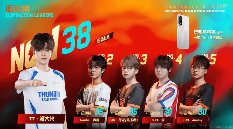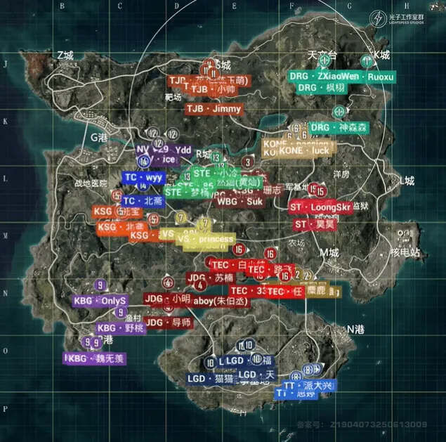 7分钟KSG高打低优势淘汰STE一人后,直接快速跑路,不做逗留。9分钟,TT被DRG先收走三人,随后最后一人被Tianba带走。15分钟,TC先击倒KBG两人后,随后走位不慎被KBG反击倒三人,最后TC死亡三人,KBG无伤亡。18分钟,STE被NV在野外淘汰。23分钟WBG淘汰KBG,Tianba被JDG-Paraboy淘汰二人后,最后一人被VS淘汰。决赛圈,TJB先淘汰VS,在淘汰KONE吃鸡。